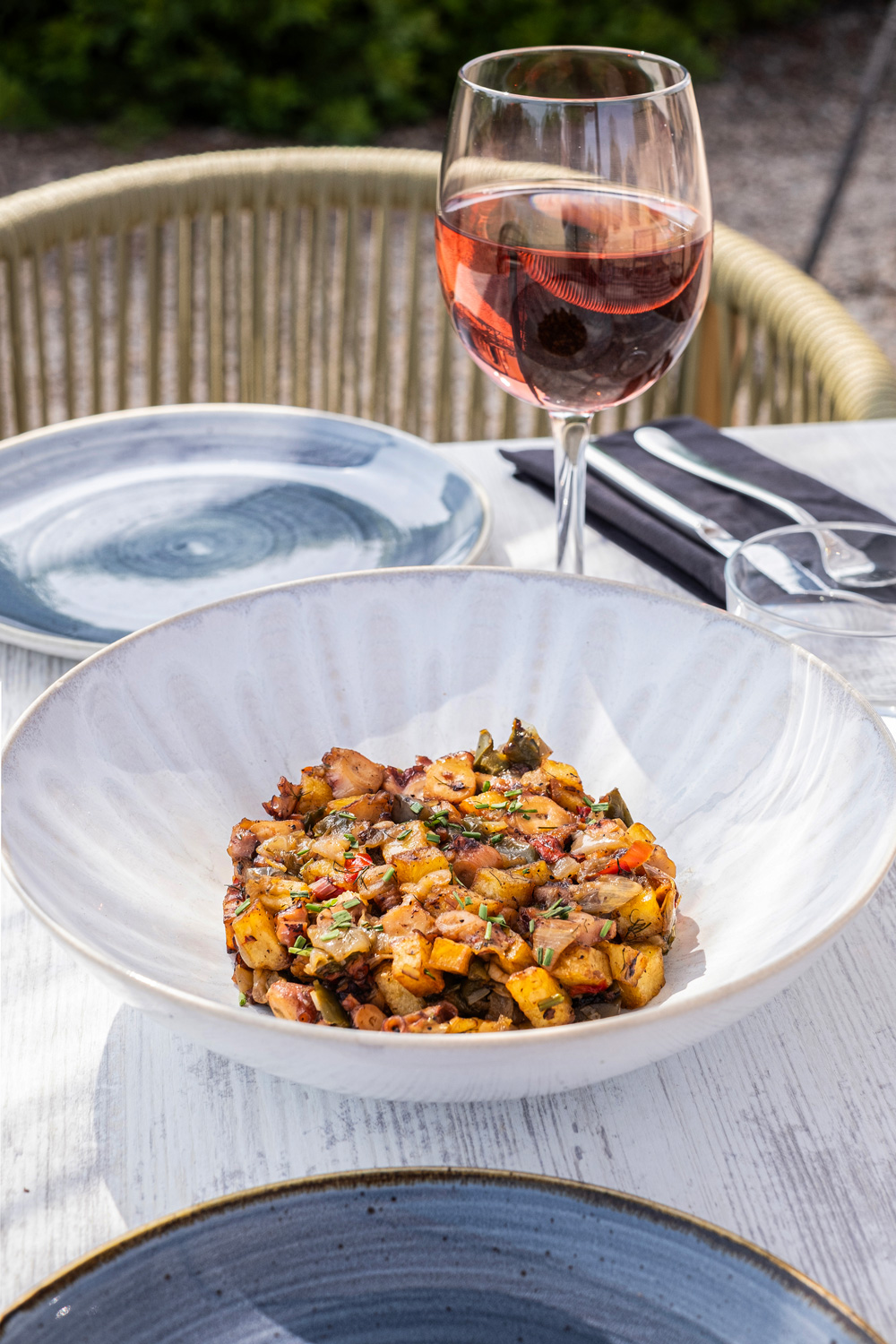 Restaurante de comida mediterránea con espacio interior y exterior situado dentro del complejo turístico Son Antem, en el cual se encuentran el hotel Autograph Hacienda Son Antem, las villas de Marriot Vacation Worlwide y dos campos de golf propiedad de Marriott.